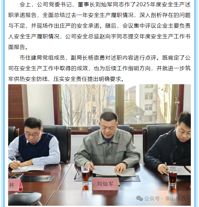 泰安市泰山城区热力有限公司召开2025年度企业负责人安全生产述职承诺会