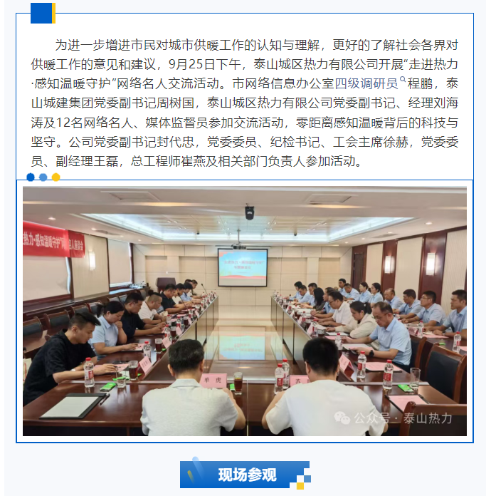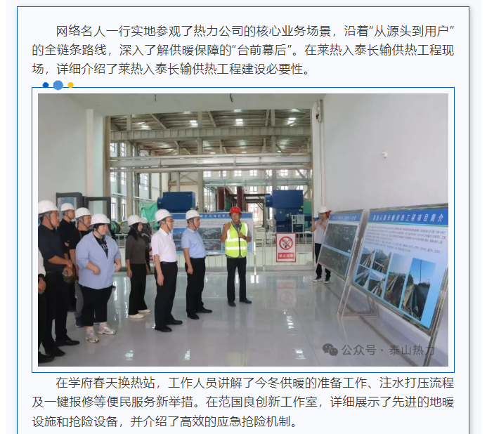 泰山城区热力有限公司开展“走进热力·感知温暖守护”网络名人交流活动