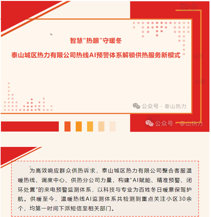智慧“热眼”守暖冬—泰山城区热力有限公司热线AI预警体系解锁供热服务新模式