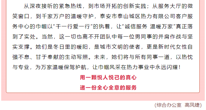 热力巾帼绽芳华 真情服务暖万家
