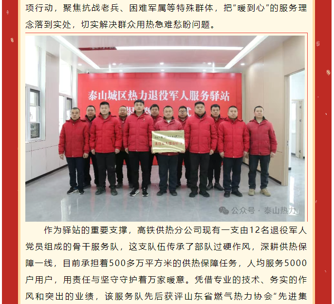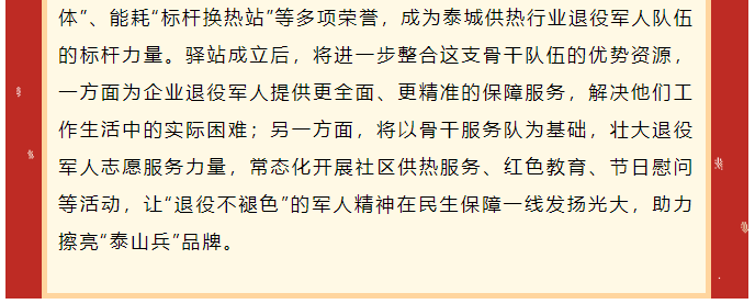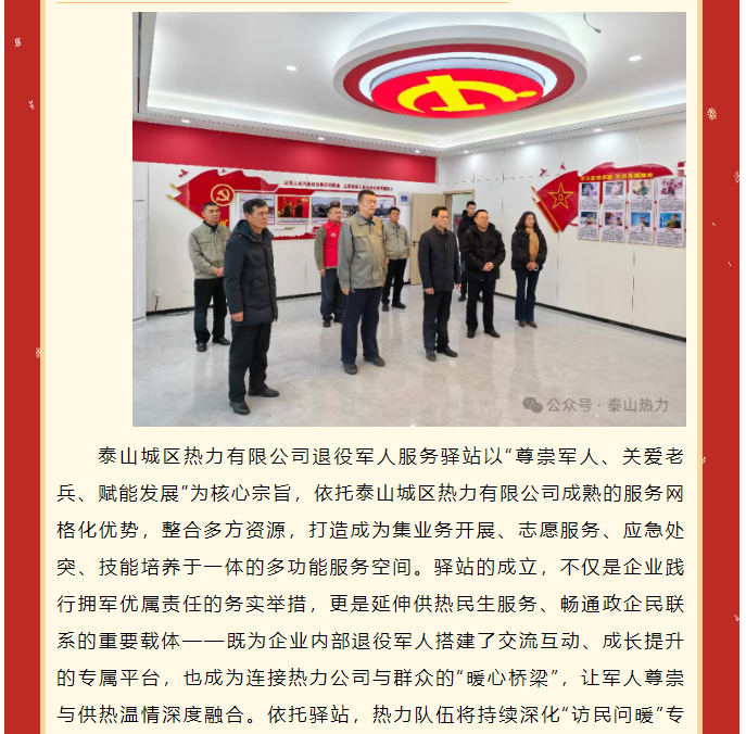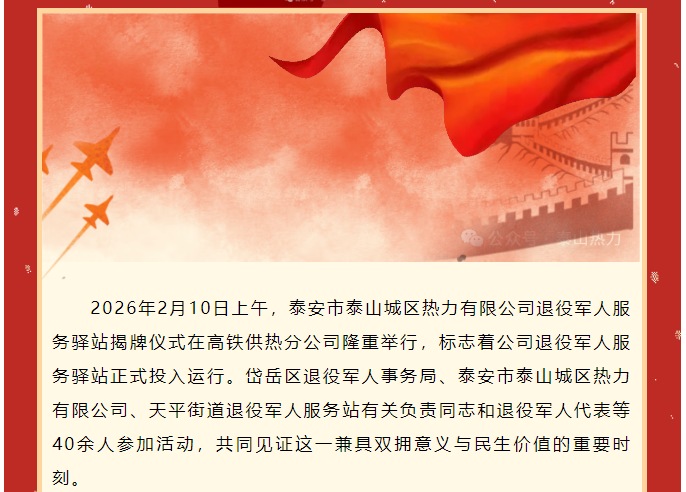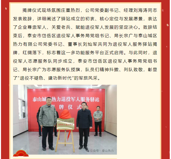 泰安市泰山城区热力有限公司退役军人服务驿站正式揭牌——以暖护航退役军人 赋能民生服务