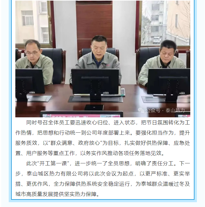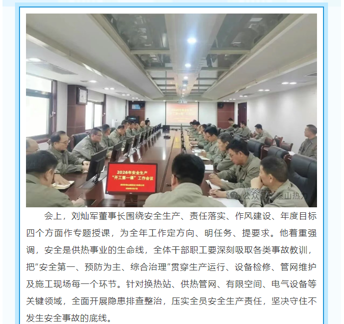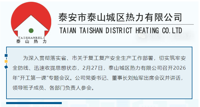 收心归位启新程 安全护航保供热 ——泰山城区热力有限公司召开2026年“开工第一课”专题会议