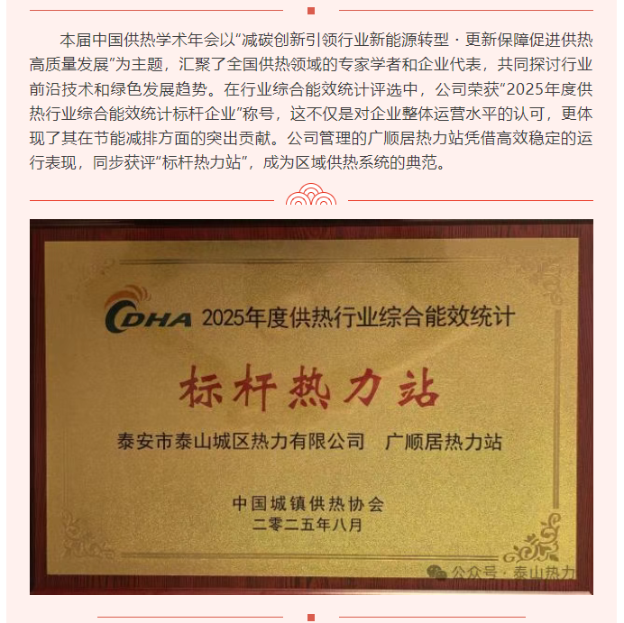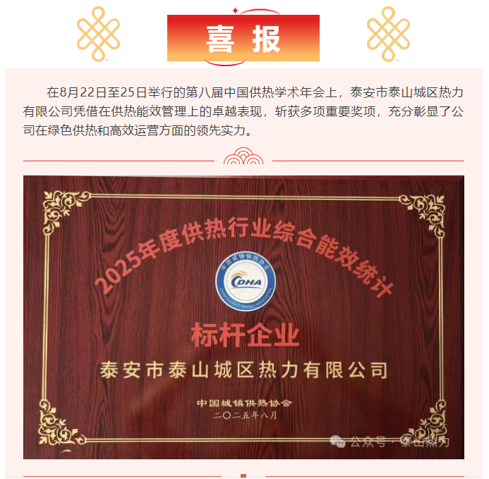 【喜报】泰安市泰山城区热力有限公司在第八届中国供热学术年会斩获多项荣誉