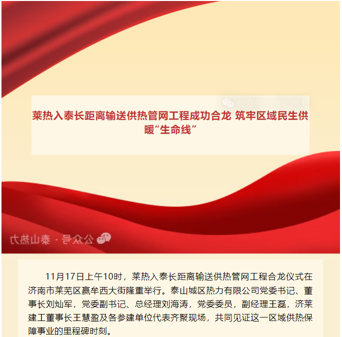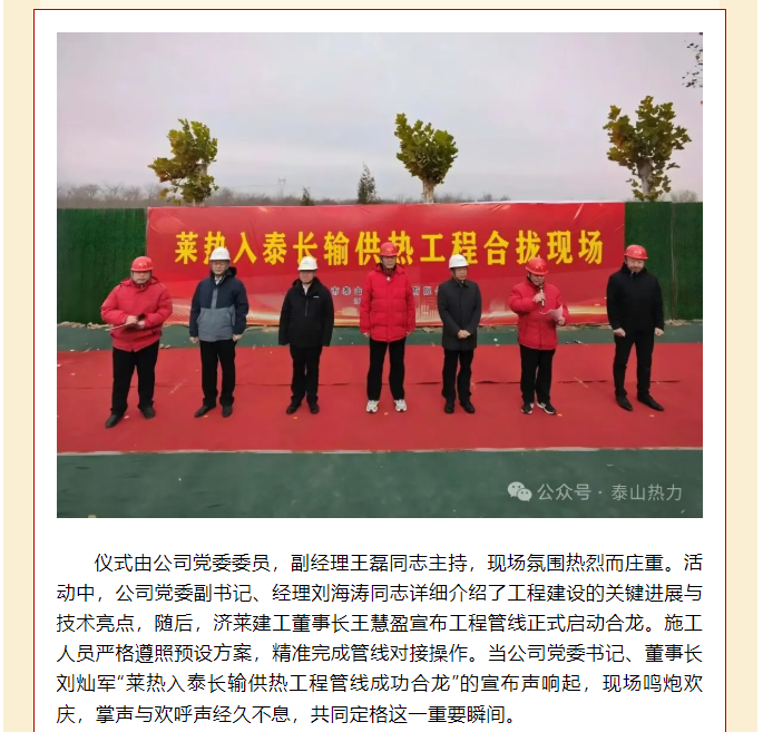莱热入泰长距离输送供热管网工程成功合龙 筑牢区域民生供暖“生命线”