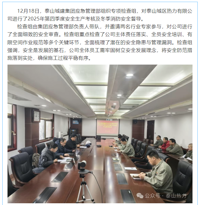 泰山城建集团对公司开展安全生产考核与消防督导工作