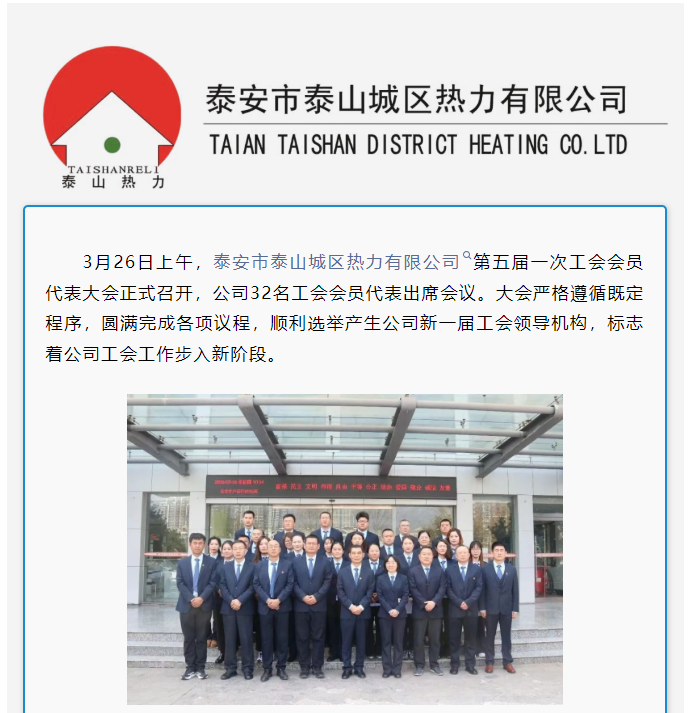 民主聚力促发展 同心筑梦向未来 —— 泰山城区热力有限公司第五届一次工会会员代表大会成功召开
