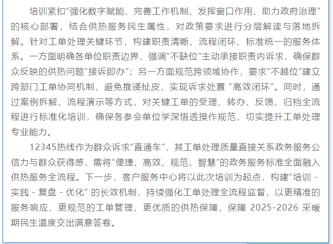 锚定民生温度 提升政务效能—— 客服中心以专题培训筑牢采暖期供热服务基石