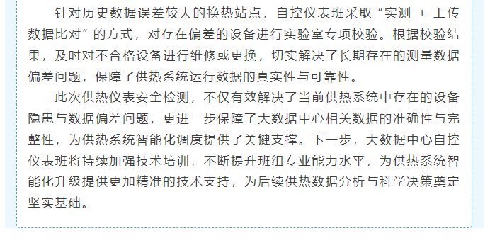 大数据中心自控仪表班完成供热仪表安全检测 筑牢市民温暖过冬与智能供热基石