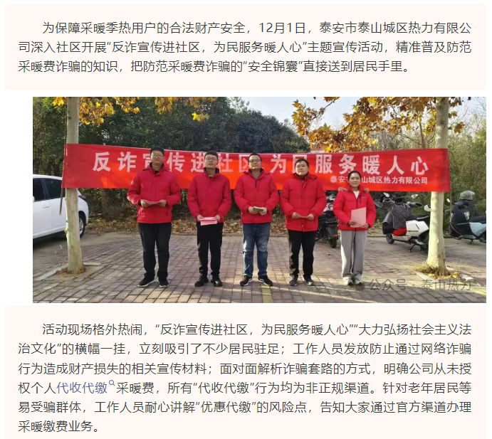 泰山城区热力有限公司开展采暖费反诈宣传进社区活动